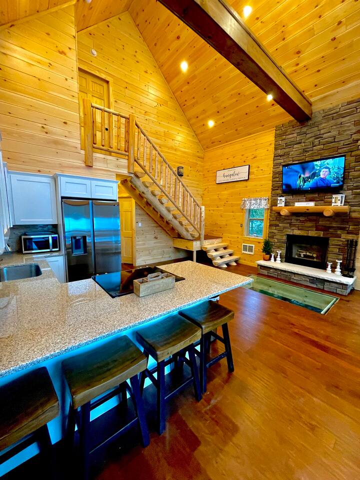 ヘムロックの木々に囲まれ、30フィートの滝から数歩のところにあるのは、私たちの居心地の良い三角屋根のログハウスです。 州の土地に接した33エーカーの広大な敷地内にあり、暖炉の前でコーヒーを飲みながら滝の景色を楽しめます。 この小さな家は、自宅のように感じられるように意図的に設計されています。 夏は滝やプライベートな小川で涼しく過ごし、秋は紅葉を楽しみ、冬はベルアイアー(25分)でスキーやスノーボードを楽しめます。 車で10分でオルダー湖とペパクトン貯水池で釣りができます。