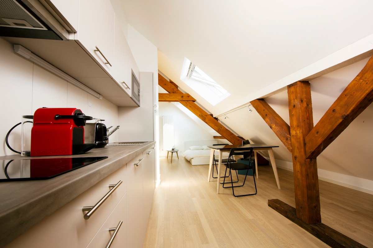 街の中心部にあるスイスのアーティストに捧げられたユニークなワンルームアパートメントをご覧ください。このテーマから、「アトリエ」という名前が付けられています。 車の通らない路地に位置し、刺激的で本物の環境を提供します。設備が整っており、モダンな快適さと芸術的な魅力を兼ね備えています。 芸術作品に囲まれ、主要な観光スポットや都市のアメニティ・設備の近くで、忘れられない滞在をお楽しみください。 市内中心部にある文化的な隠れ家があなたを待っています!