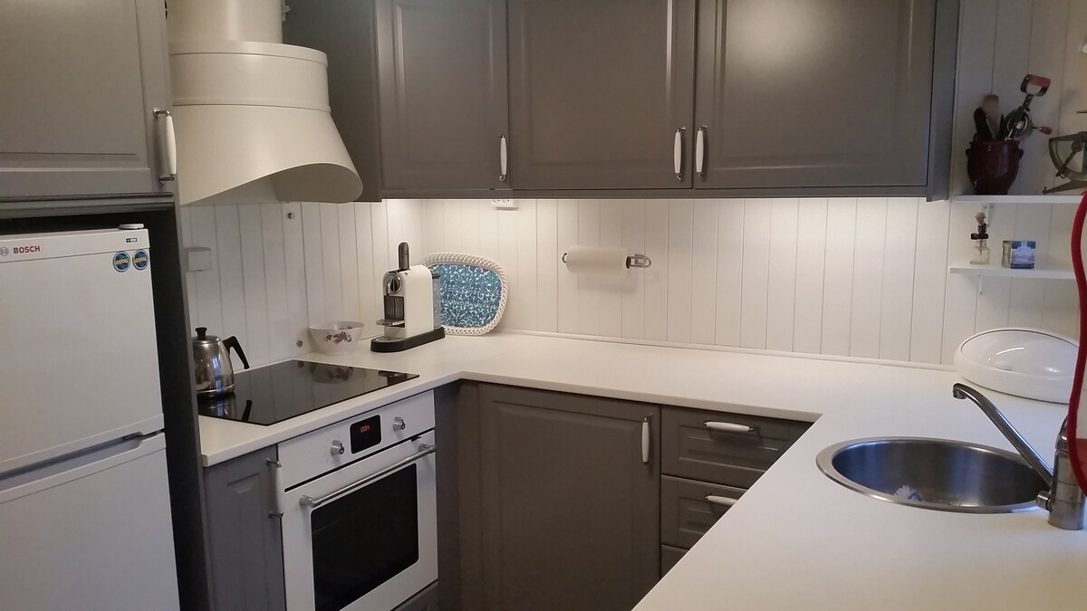 Nyoppusset hoveddel i kårhus som ligger skjermet til på gården, med en herlig utsikt over Verdal og Trondheimsfjorden. Det er perfekt for to, og med gjestesengen er det plass til å ha med en til. Det er hester på gården som kan sees fra huset. Trivsel her med hele familien, ingen trafikk forbi huset. Ønsker dere overnatting for fler enn tre, er det mulig å leie en hybel i tillegg. Muligheter for å leie stallplass til hest ved behov. Nærhet til E6 (3,6km), Verdalsøra (3,9km) og Stiklestad