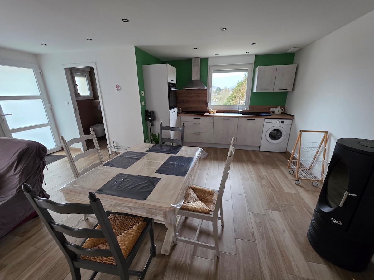 この居心地の良い独立した部屋では、プライバシーが確保されています。家の他の部分からは十分に隔離されており、部屋、バスルーム、専用トイレに通じる共用玄関があります。 数日間ご利用いただけない場合でも、ご希望に沿う解決策を見つけることができます。 ダブルベッド やかん 電子レンジ 冷蔵庫 テレビ Wi-Fi 数日間滞在する場合は、洗濯が可能です。 オートバイや自転車のためのガレージへのアクセス