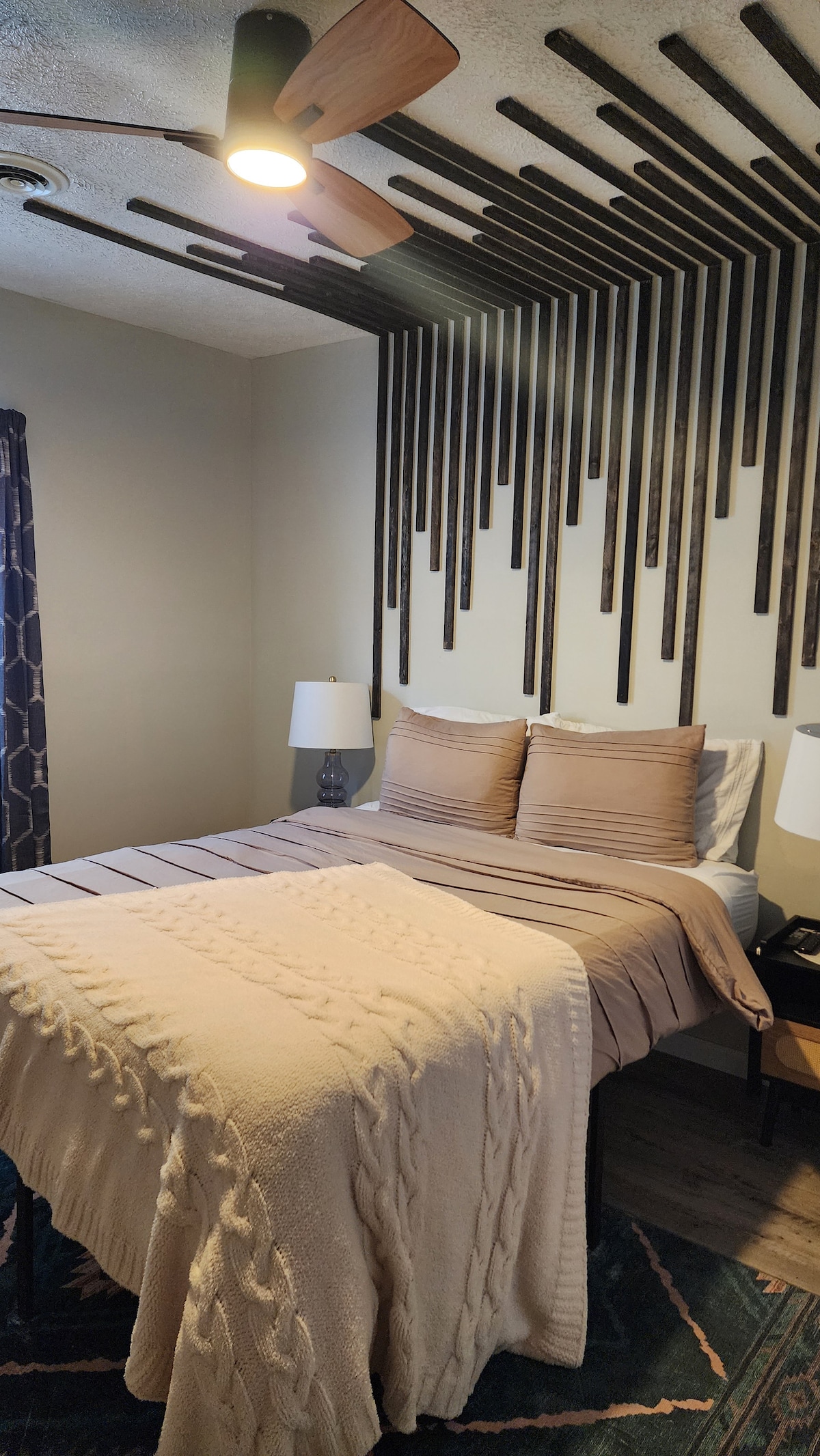 洗濯機と乾燥機、快適なクイーンベッドを備えた250平方フィートのスタイリッシュな1ベッドルーム1バスルーム。キッチンには、フルサイズのコンロ、冷蔵庫、電子レンジ、鍋、フライパンなどが備わっており、ご自宅から離れている間の調理ニーズに対応します。このユニットは、美しく改装されたばかりの建物の2階にあります。屋外のファイヤーピットスペースは共用で、夜間はとても素敵で静かです。 このお部屋は、合計4戸の建物内にあります。1戸以上お探しの場合は、お問い合わせください。