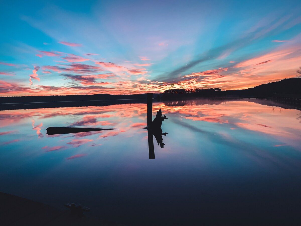 無料のカヤック、氷、グリルペレット...湖の静かな生活を楽しめる、年間を通じてご利用いただけるこのリトリートで家族みんなでリラックスしてください。(ご予約は28歳以上の方に限ります。)朝のコーヒーと夕日の景色がここでは主なアトラクションです。月明かりの中でコオロギとカエルのセレナーデを聞いてください。専用のプライベート桟橋をご利用いただけます。ボート1隻分のスペースと、ボートトレーラーを停めるための砂利敷きのエリアがあります。レイは、12月から5月までのシーズンにプロのクラッピーガイドもしています。詳細についてはお問い合わせください。
