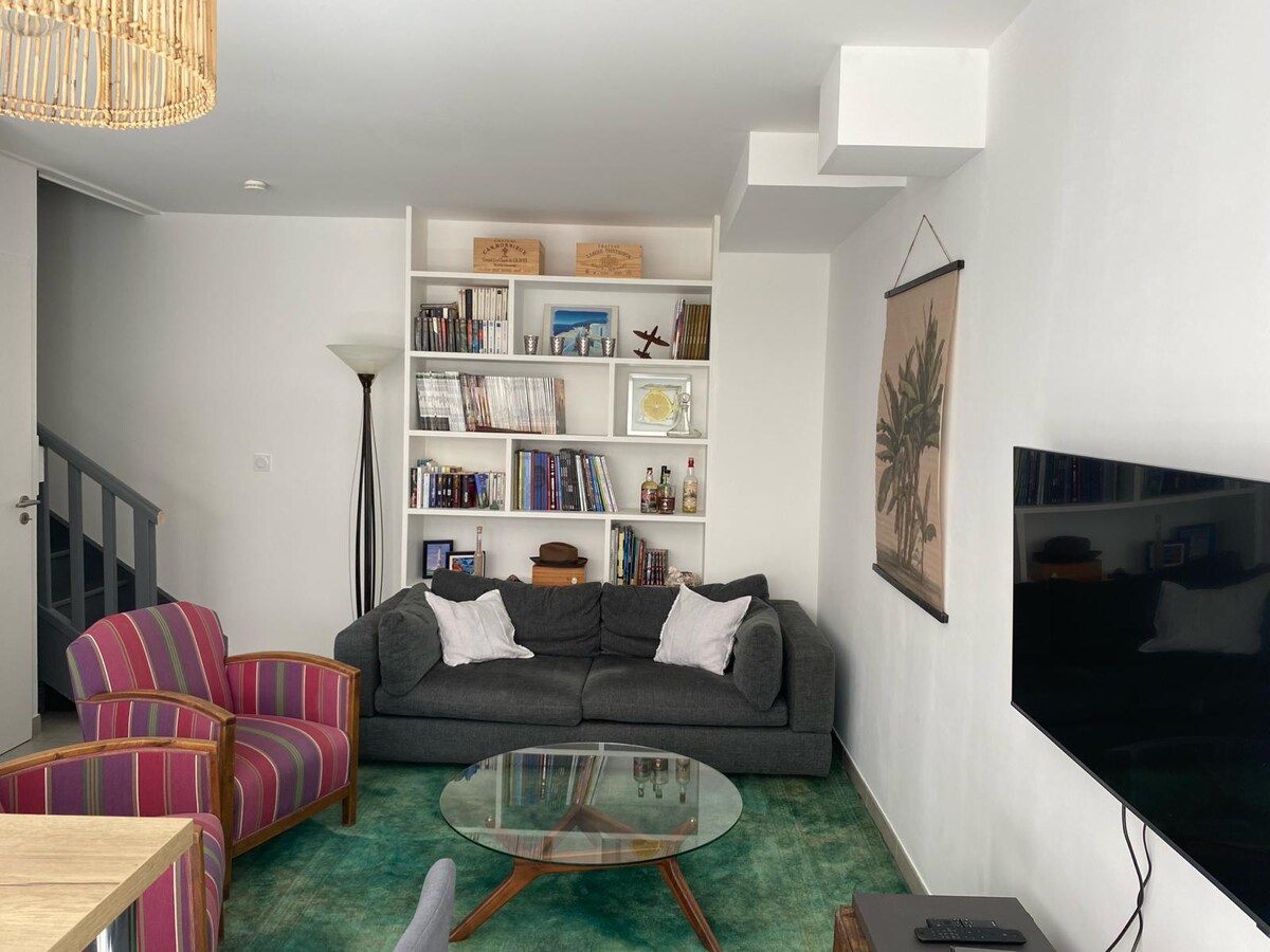 私たちの家に隣接する魅力的な独立したデュプレックスで、ガレージを通る専用の入り口があります。2階建ての36平方メートル:設備の整ったキッチン、ダイニングエリア、ソファベッド、階下のテレビ。 2階:ダブルベッド、2つ目のソファベッド、ドレッシングルーム、シャワー、バスタブ、シンク、トイレ付きの広いバスルーム。 静かな食事のための屋外テラス。 Lac du Cresの近く(徒歩10分)の近くでのんびりとした滞在に最適です。 徒歩3分の場所に無料駐車場があり、簡単な駐車場があります。 パーティー不可。禁煙の宿泊施設。