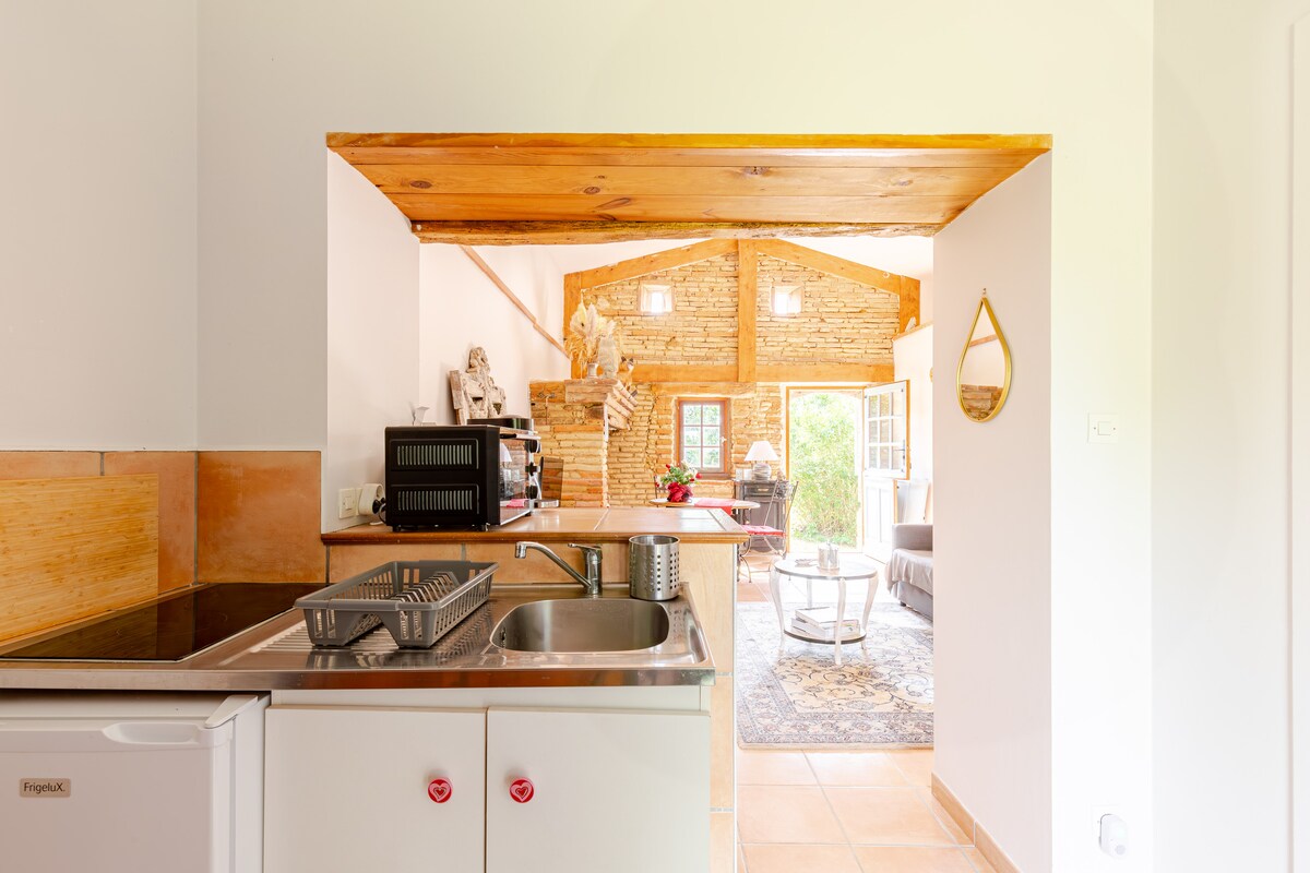 魅力とインダストリアルスタイルを兼ね備えた、1 ~4人の旅行者に最適な30 m ²のスタジオでリラックスしてください。オフィスエリア、設備の整ったキッチン、バスルーム、居心地の良いリビングルームをご利用いただけます。 広々としたテラスでは、緑に囲まれて静かなひとときをお楽しみいただけます🌿。 ミュレの町の中心部と土曜日の市場まで徒歩10分、トゥールーズの中心部まで車でわずか25分です。 リネン、タオル、コーヒー、キッチンタオル、駐車場:すべて込みです✅。