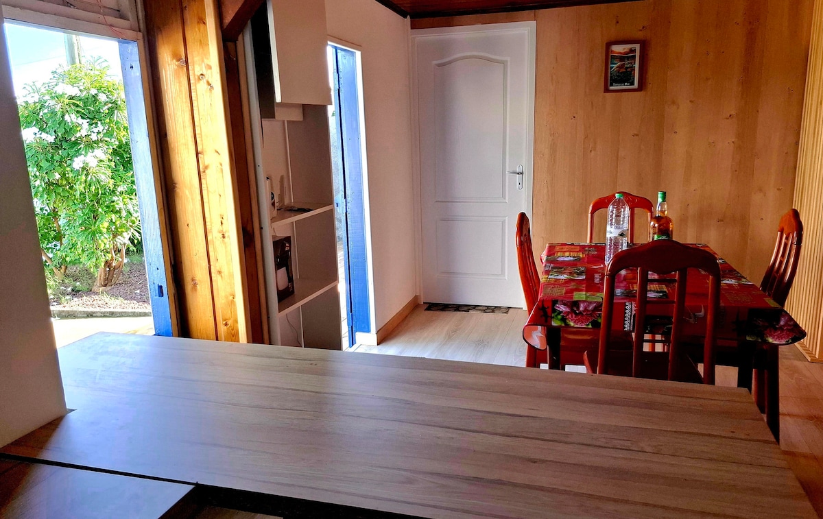 南西のエタン・サレに位置するこのバンガローは、美しい島を2人で探索するのに理想的です。シャワーエリアのある寝室スペース、設備の整ったキッチン、屋根付きテラス、屋外スペースで構成されています。バンガローは私たちの主な住居に隣接していますが、完全なプライバシーを享受できます(独立した入り口、隔離された外部など)。 エタン・サレの森、黒砂のビーチ、カヌーのプールから5分...