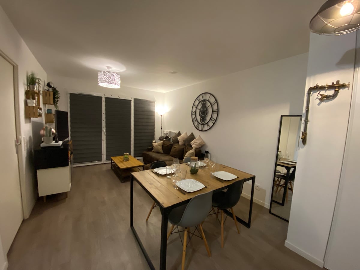 このコテージは、その出窓とテラスから、ルーアンの素晴らしいパノラマビューを提供します。このトレンディな場所には、キッチンがリビングに開いた広くて明るいリビングルーム、テレワークスペース、寝室2室、バスルーム1室があります。 さらに、快適さ、静かさ、エアコンをお楽しみいただけます。 路上駐車場無料。 自転車、スクーター、バイクの駐車場(ガレージ)。 SNCF駅と市内中心部から徒歩20分。 近くにバス停があります