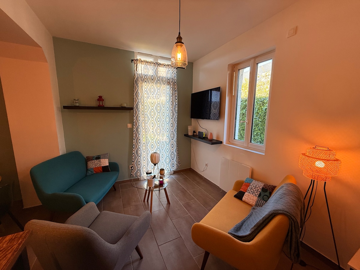 La Lanterneは、ノルマンディーのトゥルヌドスールセーヌ(ル・ヴォルドルイユ/ヴァル・ド・ルイユから4 kmの静かな村)のセーヌ川のほとりにある大きな家の美しい敷地内にある、明るくて光がたっぷり入るロフトタイプのコテージ(50㎡)です。 家は最近家具が揃えられ、設備が整っています。オープンプランキッチン、キングサイズのダブルベッドを備えた寝室、ソファ、デスクを備えた2つの広い部屋。ウォークインシャワー付きの専用バスルーム。豪華なインテリア。 平穏で魔法のような自然に近い環境です。