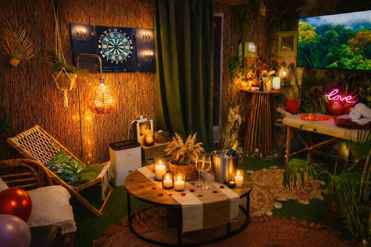 ✨ロワール川沿いにある洗練された空間、Mirage Tropicalをご覧ください🌴。スパ、マッサージテーブル、エレガントなテラス、エキゾチックなジャングルエリアを楽しんで、日常を忘れてください。ダーツを楽しんだり、エキゾチックなアペリティフを楽しんだり、ユニークな雰囲気の中でリラックスしたりしてください。夜になると、部屋は魅惑的な色で照らされ、シックでロマンチックなひとときを演出します💖。ここでは、細部にまでこだわって、思い出に残る滞在をお楽しみいただけます。🌴❤️❤️💕💕💕👄🫂❤️