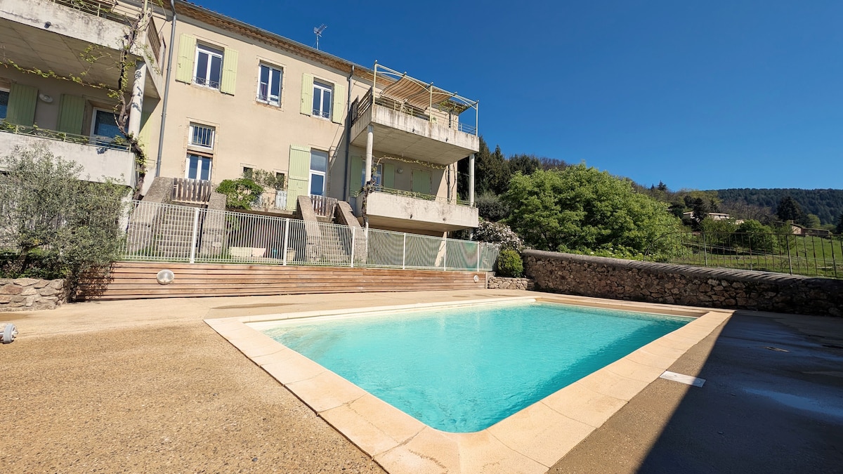 Appartement neuf classé ☆☆, Label clévacances . terrain commun de 1780 m² clôturé, parking privé, calme, pas de fêtes ni de soirées. seul les chiens sont les bienvenus les CHATS ne sont pas autorisés. 1chien, dois pas rester seul dans la location. La beauté des paysages et des rivières permettent la pratique en toute saison de nombreuses activités (Jolie lac de Coucouron à 3 mn). les petites routes bordées de genêts en fleur au printemps, vous feront découvrir, notre belle région Ardéchoise