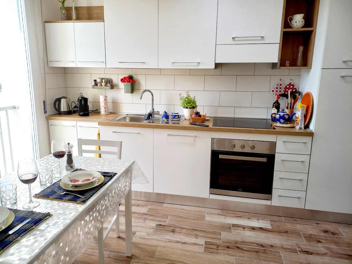 Grande appartamento indipendente, con zona giorno dotata di ampio camino, cucina spaziosa e tre camere da letto. Esternamente ci sono due posti auto ad uso esclusivo degli ospiti ed un piccolo giardino con grande barbeque in muratura.