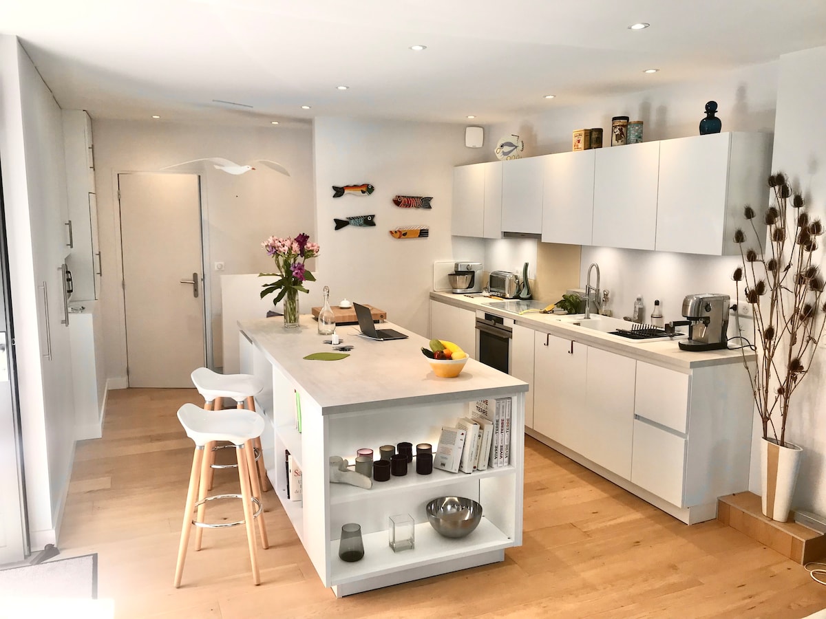 ビール島のル・パレの港に面した明るく広々としたアパートで、すべてのショップ、市場、レストラン、クレープショップ、ビーチの中心にあります。ボートへの直接アクセス。自転車用の中庭。2階に位置し、2つの寝室があります:1つのクイーンサイズベッドと1つのダブルベッド(シーツは用意されています)。設備の整ったキッチン:キッチンアイランド。バスルーム(タオル付き)。洗濯機と乾燥機。Wi-Fiとスマートテレビ。各部屋に慣性暖房。セルフチェックイン:キーボックス。
