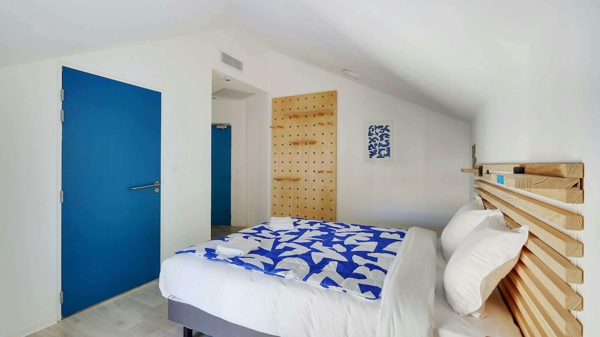 この明るく居心地の良いダブルルームには、ダブルベッド1台、エアコン、壁掛けテレビ、遮光ブラインド、無料Wi-Fiが備わっています。easyHotel Marseilleのすべての客室は、お手頃価格で快適さと清潔さを提供しており、ホテルの客室の外で素晴らしい街を探索する時間を過ごすことができます。客室の広さは11平方メートルです。 1名様1泊につき1.30ユーロのマル・シテ市観光税はAirbnbの料金に含まれておりませんので、ホテルに直接お支払いいただきますようお願いいたします。