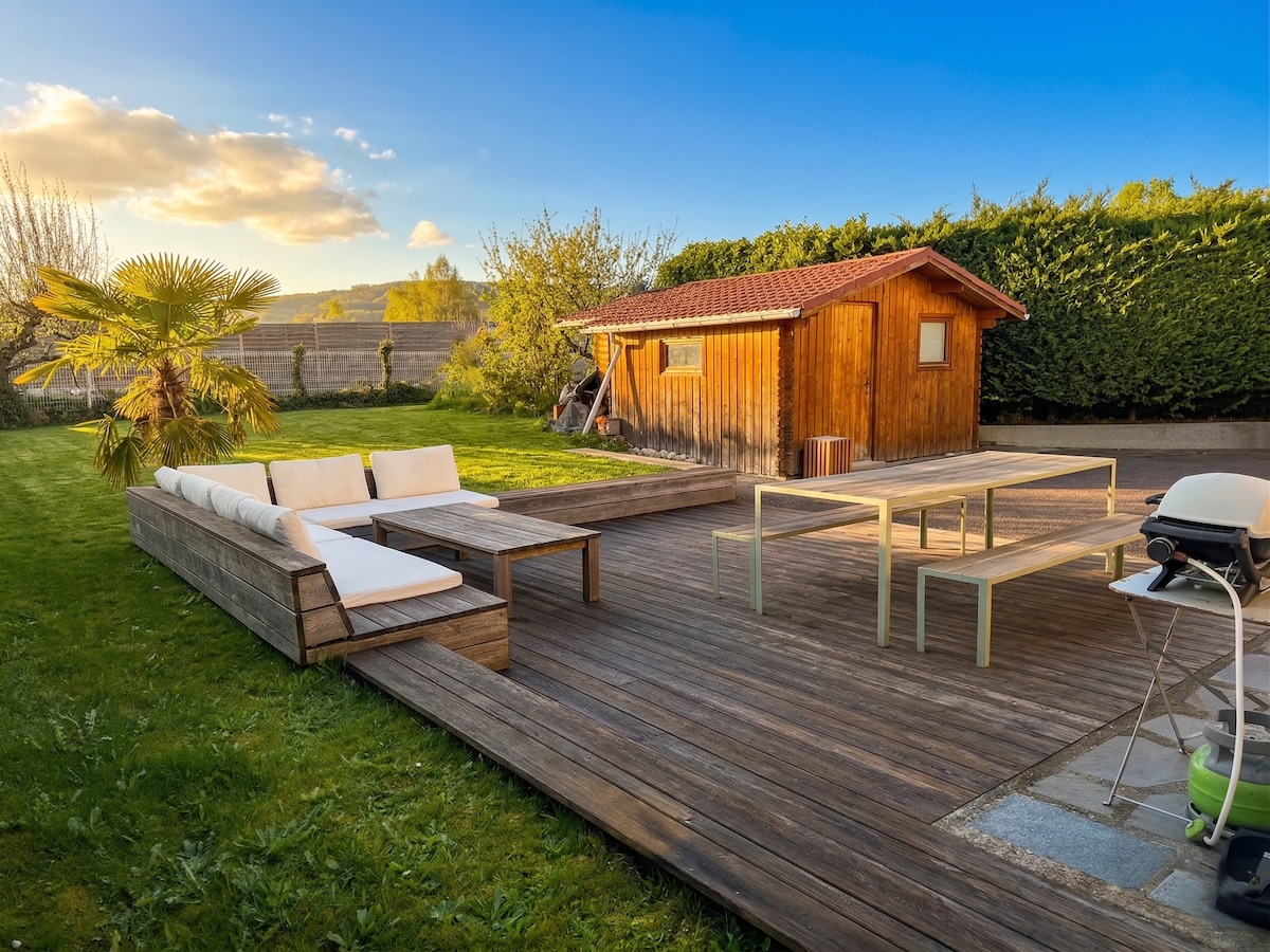 💖 アルベールヴィルでロマンチックなひと時を。駅、市内中心部、高速道路からすぐの立地です。この2名様用のラブルームには、クイーンサイズベッド、4Kホームシアタースクリーン、設備の整ったキッチン、光ファイバーWi-Fi、そしてユニークな体験を楽しめるタントラチェア🔥が備わっています。真の魅力:💎プライベートガーデンとジャグジー付きのテラスで、プライベートな時間を過ごせます。ロマンチックな週末に最適。お部屋を予約しましょう。