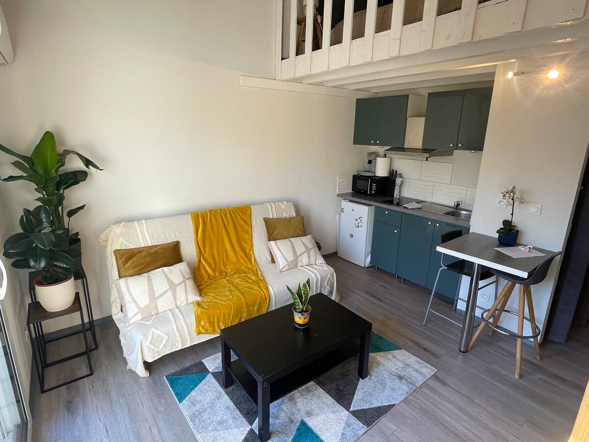 Appart T1bis + メザニン、エアコン、駐車場、テラス、