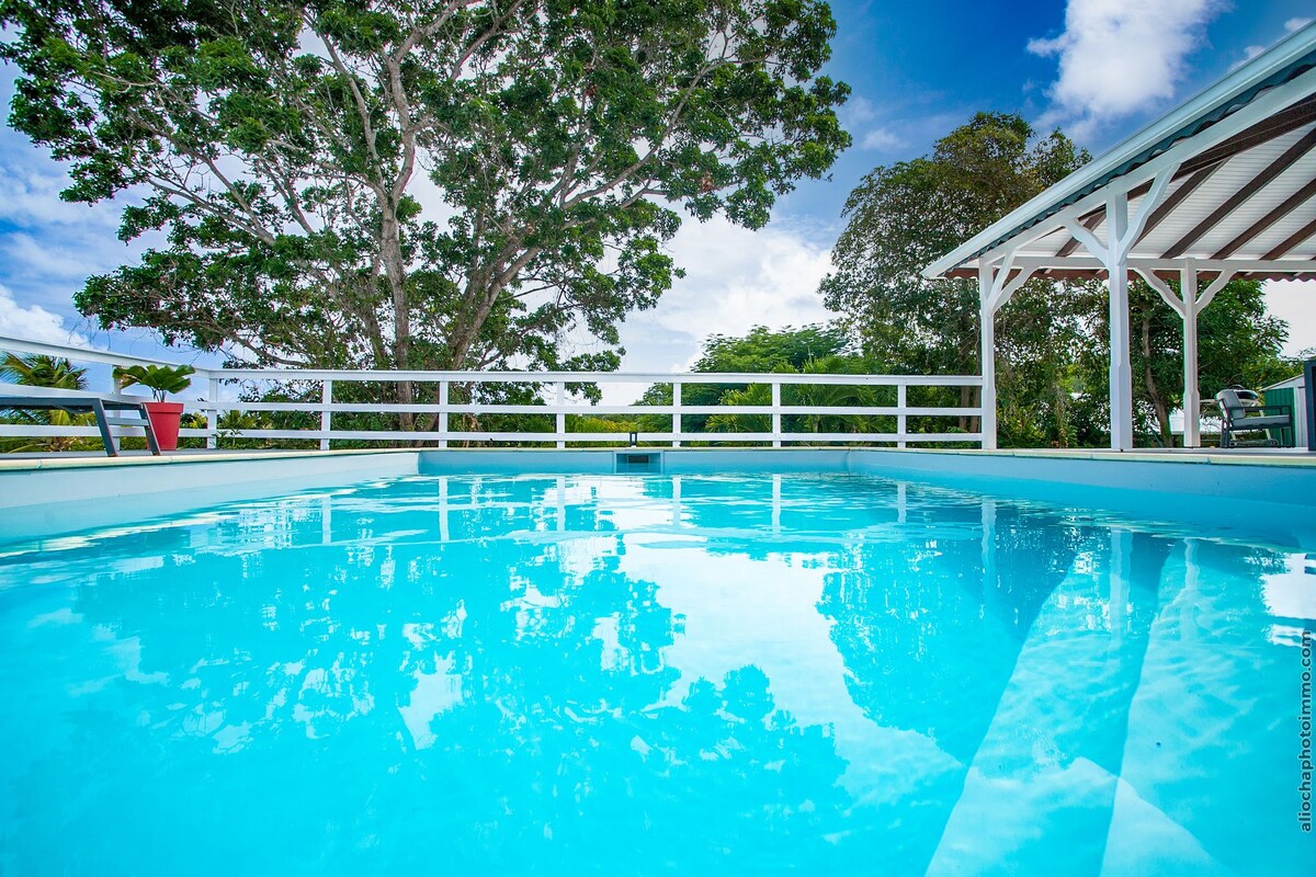 **許可されていないイベント** マルティニーク島のル・ヴォークランとル・フランソワの間に位置するこの魅力的なヴィラで、リラックスした休暇をお過ごしください。静かなエリアに位置し、小さな家族やカップル、またはリラックスしたい方に最適です。ミュルレ湾の眺望、専用プール、忘れられない滞在に必要なすべての快適さを備えた楽園のような環境をお楽しみください。