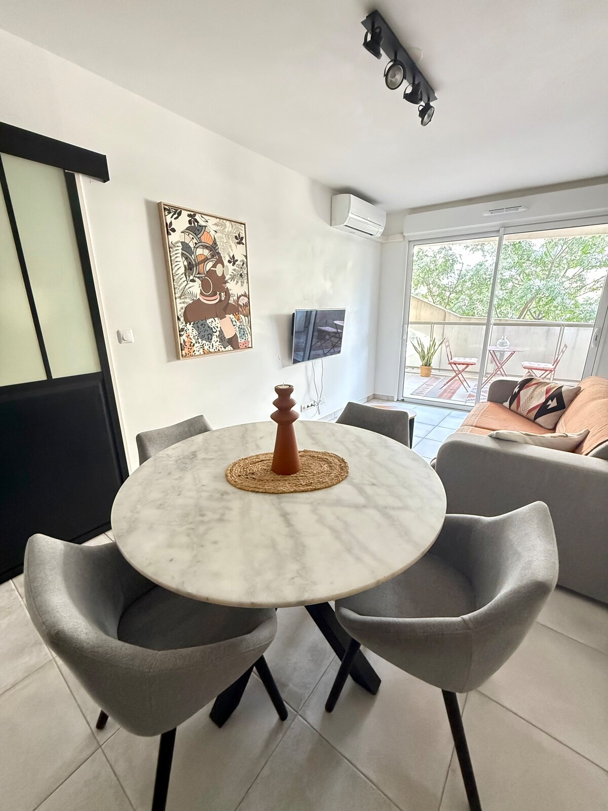 Découvrez un studio lumineux et confortable, idéal pour un séjour en couple, un déplacement professionnel ou une escapade à Montpellier et ses plages. 📍 Emplacement parfait 🌟 À 20 mètres du tram 🚆 10 min du centre-ville 🏖️ 20 min des plages (Carnon, Palavas) 🛋️ Le logement Ce studio comprend : • Climatisation et espace lumineux • Espace de travail dédié avec Wi-Fi • Cuisine équipée + machine à café Nespresso • Parking en sous-sol • Jardin pour se relaxer après une journée de visites