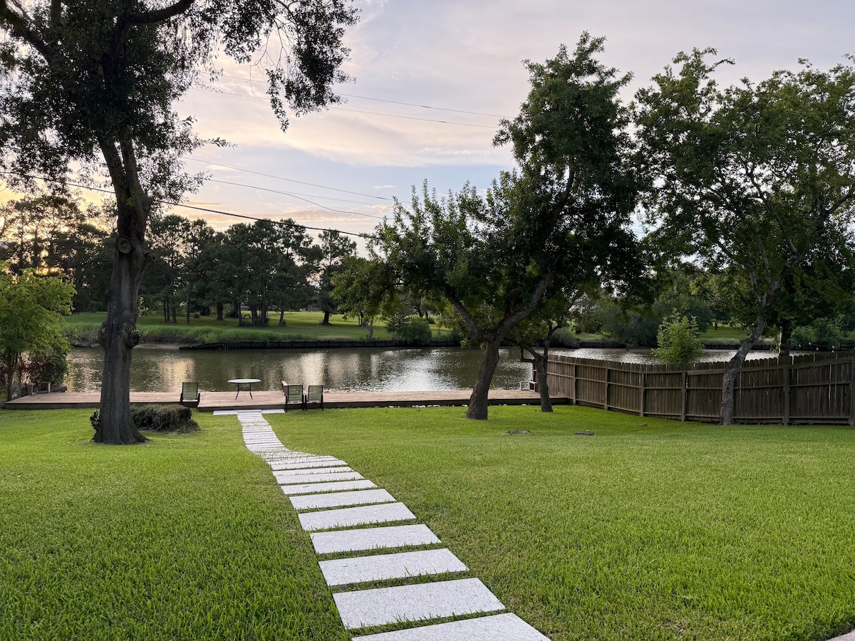 美しいヴィラでのんびりとした滞在をお楽しみください。 バイユーの息をのむような景色が楽しめます。 I -45高速道路からわずか2分で、NASA、ガルベストン、ヒューストンへの通勤が簡単です。 また、アウトレットモールまで5分です。 高速Wi-Fi、大型テレビ、広い裏庭、焚き火台、専用ドック、カヤックまで用意されています。 こちらのユニークな宿泊先には、独自のスタイルがあります。