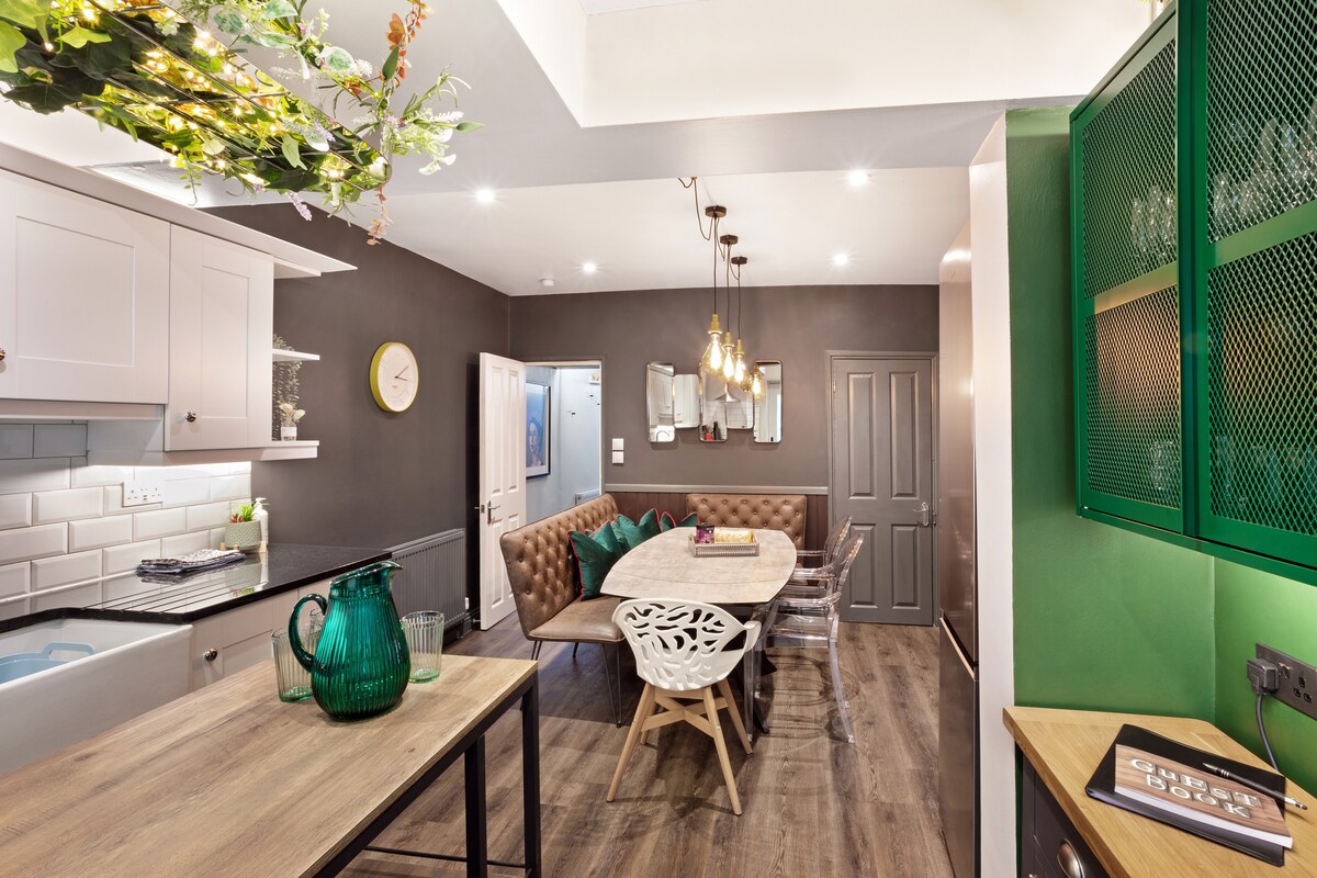 この独立した新しく改装された家は、ハロゲートを体験するための拠点としての大人数のグループに適した広々としたモダンな暮らしを提供しています。 オープンプランのラウンジ/キッチンと4つの広々とした寝室があります。寝室のうち3つにはキングサイズベッドがあり、1つの部屋には2つのシングルベッドがあり、すべてエンスイートがあります。 中心部に位置しているため、ハロゲートの中心部まで徒歩5分で、数多くの素晴らしいレストラン、バー、カフェ、またはカンファレンスセンターに行くことができます。