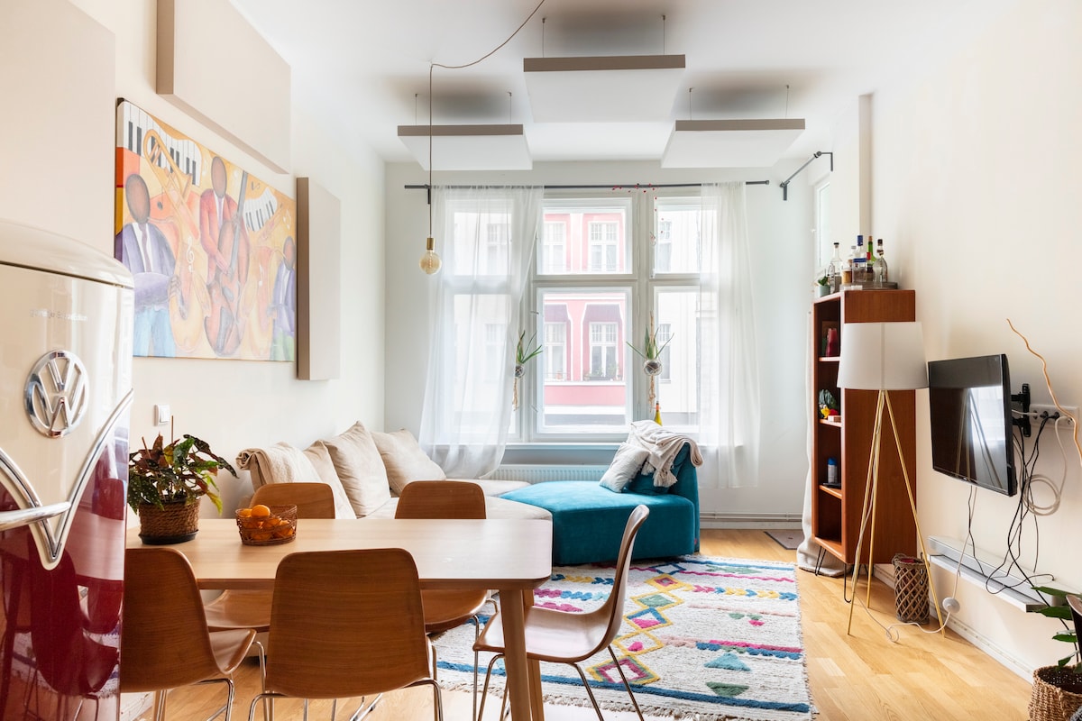 ベルリン・ミッテのオアシス - トレンディなグライスドライエック公園のすぐそば。私たちのアパートは、スタイリッシュでモダンなインテリアを兼ね備えています。ベルクマン地区とアカシア地区に近く、公園や庭でリラックスしたり、バーベキューも楽しめます。 アパートは2つのワークスペースを備えており、在宅勤務のカップルに最適です。地下鉄は徒歩わずか2分です。また、設備の整ったキッチン、バスタブとシャワー付きのバスルーム2室、スマートホーム、掃除機ロボット1台を完備。地下駐車場も含まれています。