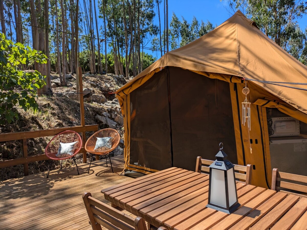 You are very welcome in our small scale glampingin the beautiful Costa de Prata! Our glamping consists of 3 spaciious lodgetents with a shared pool. The glamping is located in a tranquil area, just outside a small village. Still it is only a few minutes drive to the main road, and 10 minutes to the sea. There is lots to see and do in the region. You will stay in lodge Picea. All our lodges have everything you need, and more!