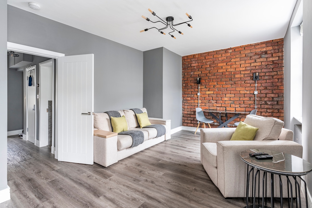 モダンな1階のフラット-無料駐車場、高速Wi-Fi