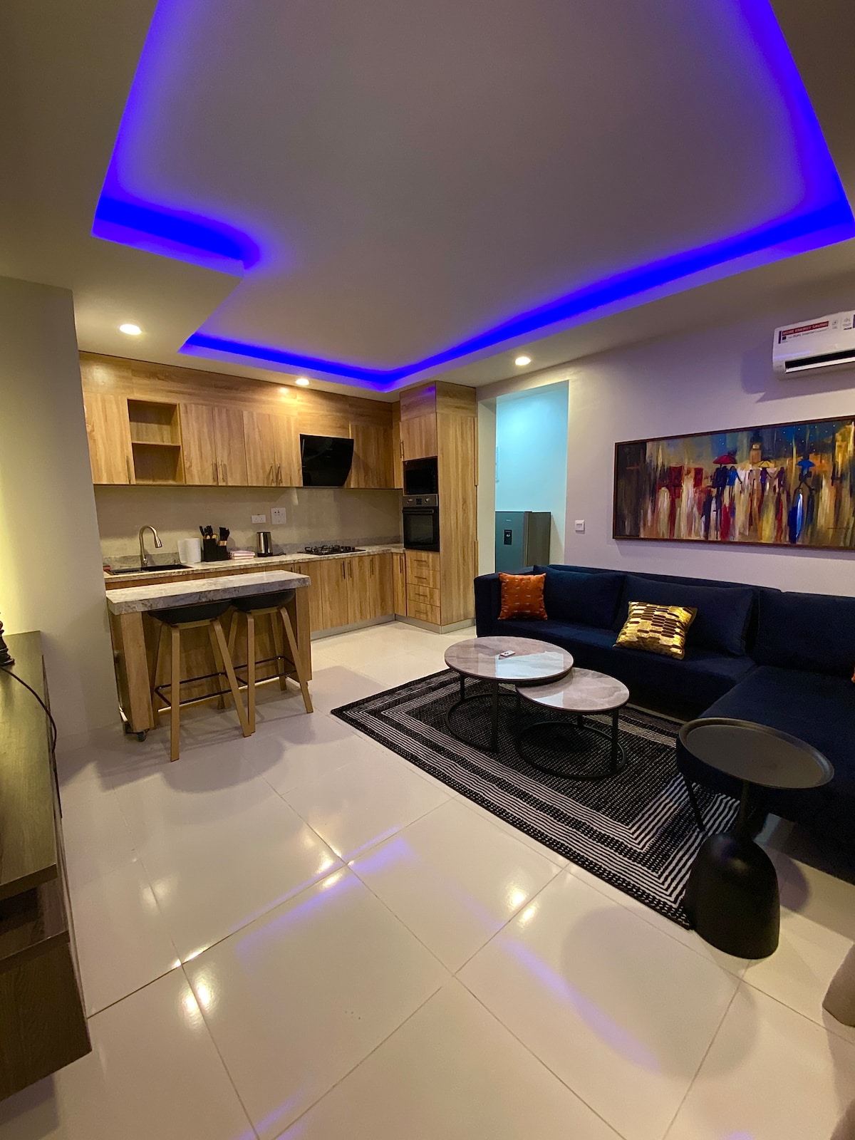 24時間365日のセキュリティを備えた静かなゲート付きの敷地内にある、美しい家具付きの2ベッドルームアパートでプレミアムな快適さをお楽しみください。レッキ・エペ高速道路からすぐで、レストラン、ナイトライフ、スーパー、サロン、ガソリンスタンドに近いです。このお部屋には、豪華でありながら機能的なデザイン、広々としたリビング、設備の整ったキッチン、快適なマットレス、高速インターネット、スマートロックが備わっており、さらに便利です。