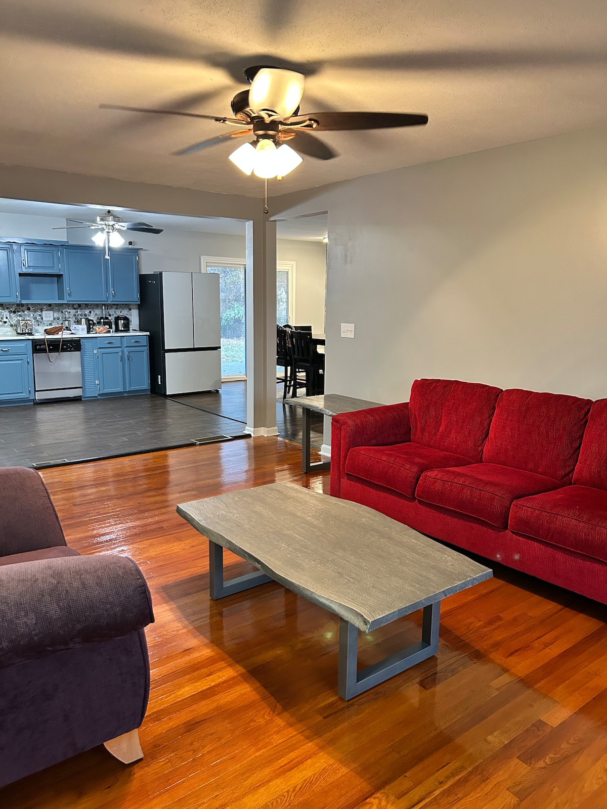 新しいキングベッド2台、クイーンベッド1台、カーペット、すべての寝室とファミリールームにRoku TV。 新しく改装されたバスルームとキッチン! 隣にはさらに3つの寝室があります! 結婚式の招待客や、お互いから近い場所に滞在したいグループに最適です。 静かで素敵なエリアにあります!!! カンザス州とミズーリ州のすべての近くに高速道路があります。 キッチンは設備が整っています。 デッキでイブのカクテルをお楽しみください。 50エーカー以上の広い公園に面しており、素晴らしい散歩道とプールがあります。夏季は毎日入場料がかかります。ベビー用品をご用意しております。