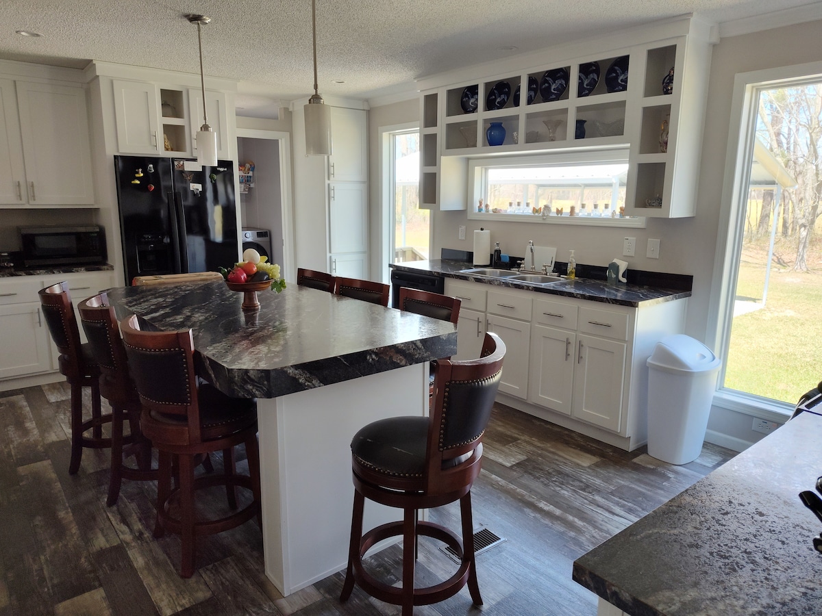 Forget your worries in this spacious and serene space. Enjoy the open feel of the floor plan. Peaceful quiet setting. On 4.64 acers. There are 13 pecan trees on property, Grapevines and a fig tree , also blueberry bushes. Quiet setting at the end of a dead end gravel road on private property.This property is overlooking a farmers field and surrounded by trees and nature. There is a pond on the property . 10 min from town. We are close to hwy 11 and hwy 55. .and hwy 258. No animals of any kind