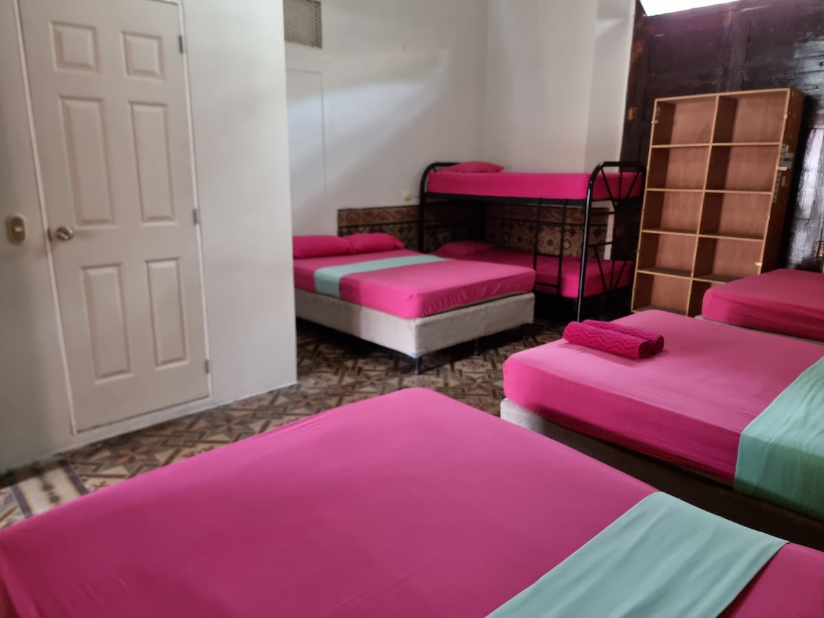 Stylish comfort in Central León. Looking for quality and a great atmosphere? Our modern room features AC, comfy beds, and a private bathroom. We are perfectly located: 2 blocks from the Cathedral with a supermarket around the corner. Our friendly staff is here to help you explore, from city walks to Volcano Boarding! Note: We offer refreshing cold water showers, a local favorite in the warm climate. Ideal for couples!