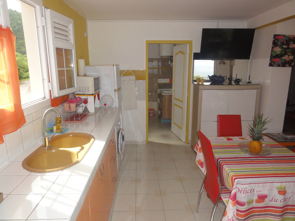 La "Location Le Pic de la Buse" vous propose un appartement F2 de standing de 50 m² niché dans une villa aux Anses d’Arlet, où le temps semble s'être arrêté. Depuis votre terrasse en deck de 22 m², vous profiterez d’un panorama spectaculaire sur la mer des Caraïbes. Ce havre de paix, bercé par le chant des oiseaux (sucriers, tourterelles…) et visité par les cabris en liberté, offre un cadre "zen" à seulement deux minutes de la plage de Petite Anse. Lieu idéal pour admirer les tortues marines.