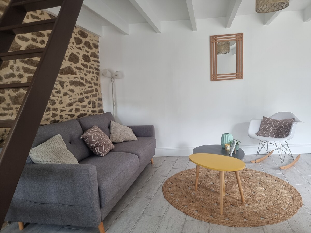 レンヌとサン・マロの中間に理想的に位置する魅力的な小さな家。2名様に最適ですが、ソファーベッドで4名様まで収容可能です。絵のように美しい田舎の風景に囲まれ、庭とプライベートテラスを備えています。古い農場の一部である独立した家。私たちは隣の家に住んでいます。本物のリラックス体験を求める方に最適です。敷地内には犬と猫がいます(リオとチャーリー)。直接お越しいただく場合のみ受け入れます。