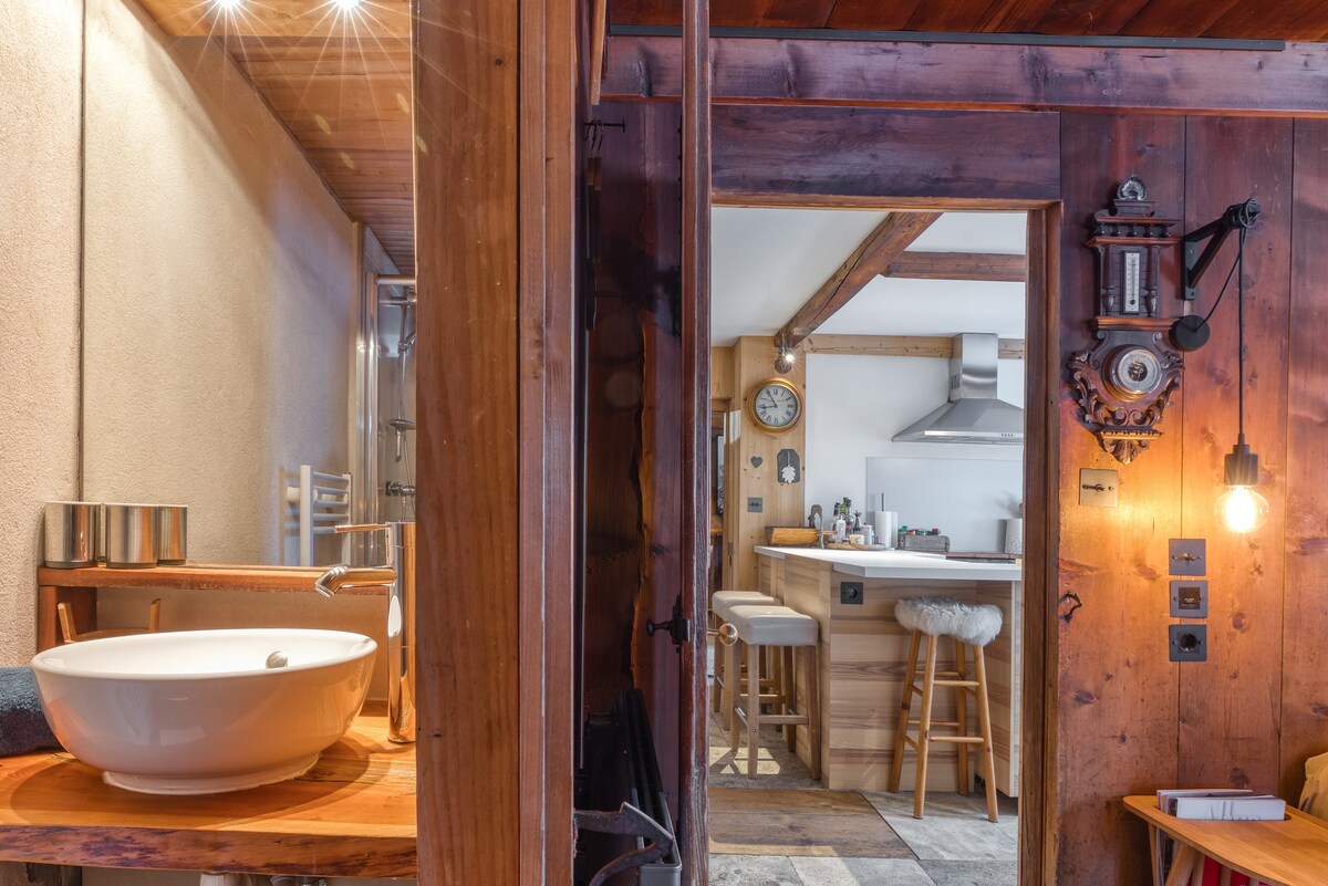 Mazot (petit chalet) de 25 m² au cœur du village des Praz, à 2 km de Chamonix, au pied du téléphérique de la Flégère et proche du Golf. Idéalement placé, commerces de proximité : tabac presse, restaurants, magasins de sport, location de skis, épicerie, arret de bus. Logement pour 2 personnes, comprenant une pièce à vivre, une chambre à l'étage, une cuisine et une salle de douche. Draps et serviettes inclus. Petite terrasse et plancha à gaz en saison d'été. Place de parking réservée