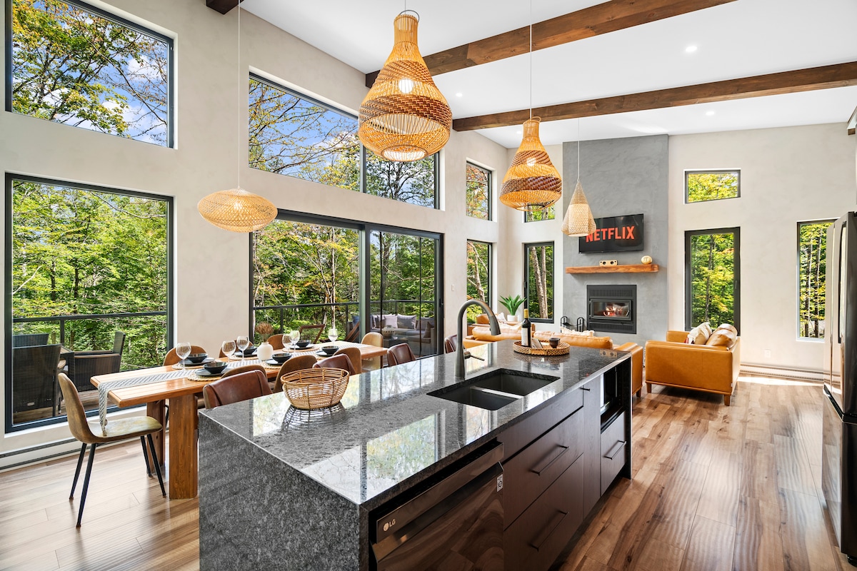 現在のプロモーションについてはお問い合わせください! 息をのむようなモン・トランブラン山の景色を眺められる、人里離れた建築家のガラスキャビン!Klint Tremblant (デンマーク語で崖)はユニークなデザインで、快適さと贅沢さを味わうことができます。 ローレンシャンのモン・トレンブラン村から10分、パノラマテラスとプライベートホットタブを備えた、自然のシンプルさと現代的な贅沢さを兼ね備えた、雄大なガラス張りの建築空間です。カナダの有名なデザイナーが設計した1200エーカーの共有ドメイン!