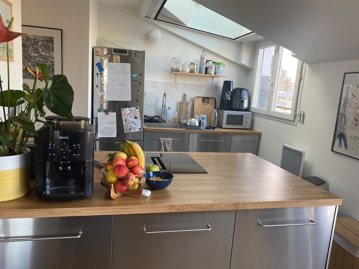 明るく広々としたモダンなロフト。 近くにはお店があります(スーパー、肉屋、パン屋、チーズ屋)。 設備の整ったキッチン。 建物のすぐ下には地下鉄セルジュ・ゲンズブール駅(11番線)があります。 パリの中心部まで16分。 安全な駐車場。 高速Wi-Fi:光ファイバー。 寝室1:ダブルベッド140 x 200 cm、シーツ類付き 寝室2:シングルベッド2台(90 x 200 cm)、シーツ類付き ベビー用折りたたみベッド。 コネクテッドテレビ。 あらゆるタイプの滞在に最適です。私たちの家へようこそ! マエル