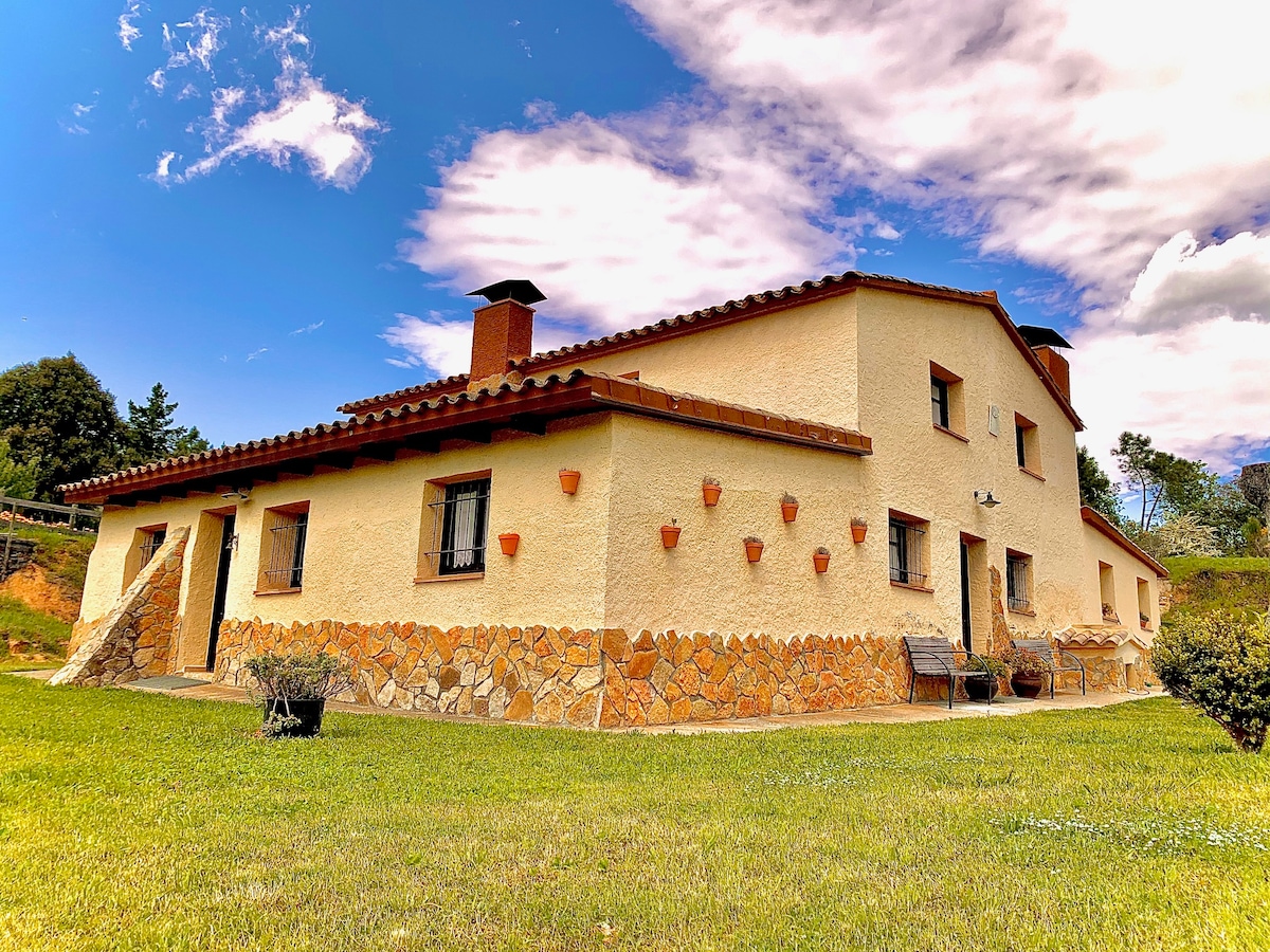 カン・ケル・ノウは広々とした宿泊施設を提供しています。テル川、オロット・ジローナの緑の道、レ・ギレリエス山脈に近く、コスタ・ブラバから30分の静かな環境にあります。家からは周囲の山々の景色がよく見えます。釣り人、サイクリスト、ハイキング好きに最適です。釣り服、自転車、その他の器具を置くスペースがあります。屋外スペース、大きなテラス、素敵なポーチ、専用駐車場、Wi-Fi、リモートワーク用のスペースがあります。