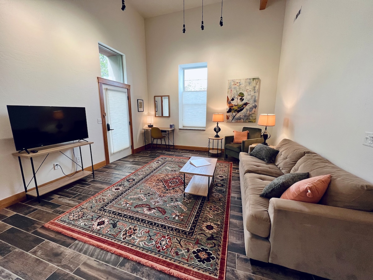 2階のアパートはすべての部屋に窓があり(バスルームとウォークインクローゼットにも)、高速Wi-Fi、デジタルロック付きの専用玄関があります。セルフチェックインで、プライバシーを確保しながら出入りできます。 素晴らしいマウンテンバイクとハイキングコースまで3ブロック、そして素晴らしいレストラン、ショップ、3つの醸造所、蒸留所、アイスクリームショップ、マーナロイ劇場やグランドストリートコミュニティ劇場を含む映画館がある歴史的なダウンタウンエリアまで3ブロックです。 長期滞在または短期滞在のためのフルキッチンがあります。