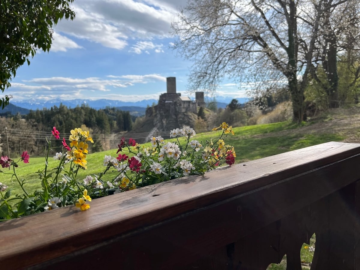 この静かな宿泊施設であなたの最愛の人とリラックスしてください。中世のリーベンフェルズ城と山々の素晴らしい景色とともに、自然の音をお楽しみください。暖炉とサウナ付きの緑豊かなリラックスできる休暇の家。美しいグレンタールとその豊かな歴史を眺めながら、自然の中でリラックスして過ごすためのバーベキューとファイヤーボウル。私たちは古い穀物倉庫を慎重に改装し、あらゆる快適さを備えました