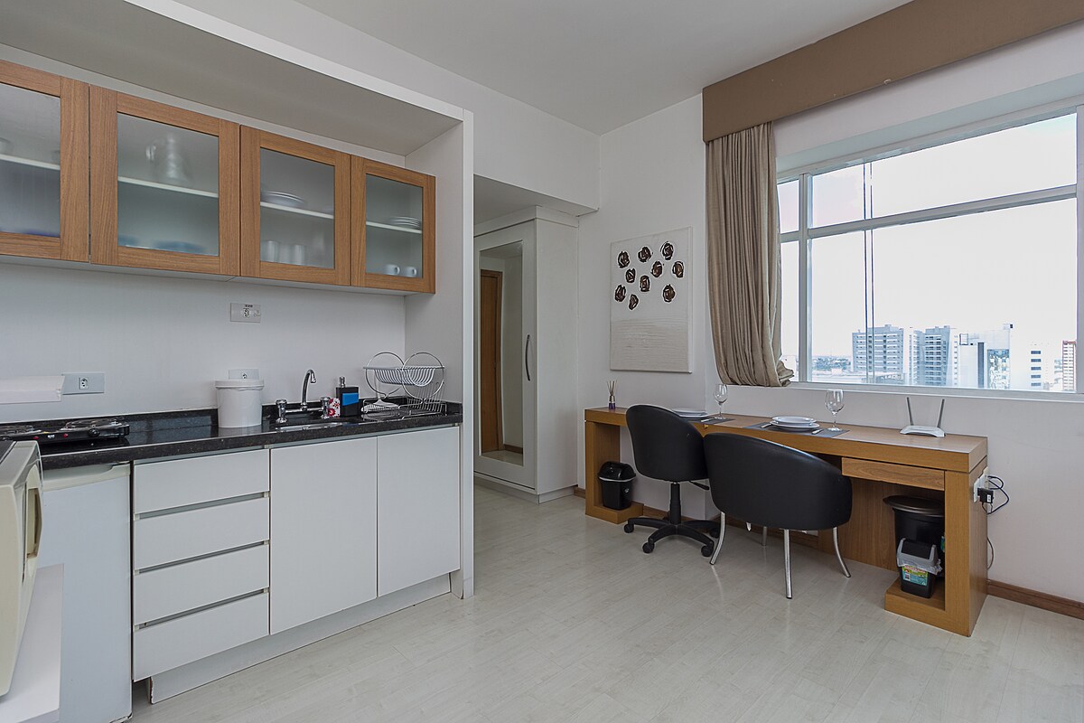 Flat com vista panorâmica deslumbrante do nascer e pôr do sol, em localização privilegiada na região central de Curitiba (Alto da XV). A 3 quadras da Reitoria da UFPR, 900m do ESTÁDIO COUTO PEREIRA, e a menos de 2 km do HOSPITAL DE CLÍNICAS. Próximo ao Teatro Guaíra, Mercado Municipal e Passeio Público, com tudo acessível a pé. Estrutura completa com piscina, academia, sauna e recepção 24h. Estacionamento coberto e café da manhã disponíveis (pago a parte).