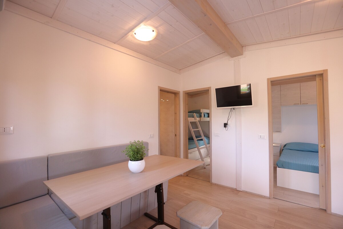 situata all'interno dell'area campeggio del Villaggio Turistico Pian dei Boschi, offriamo una casa mobile con due camere da letto, una matrimoniale e una con due letti singoli; vano soggiorno con blocco cucina arredato di tutte le stoviglie e pentolame. Bagno con doccia + piccolo bagno con wc . Aria condizionata, phon e TV. Veranda esterna arredata con tavolo e sedie. L'ideale per una famiglia!!