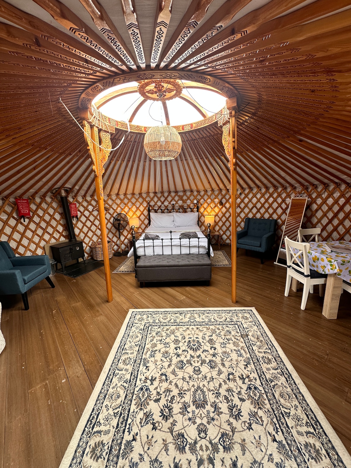 暖炉、天窓、庭園、ジャグジー/サウナ付きのユルト