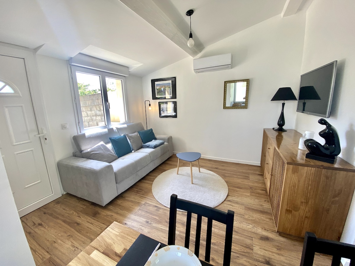 50平方メートルの独立した快適で広々とした最新設備のモダンなヴィラ。静かで快適な環境 テラス、日陰、バーベキュー、専用駐車場 含まれるもの:シーツ、タオル 15時からの柔軟な到着。 カップルに最適、追加の寝具を用意していますので、ソファーベッドで寝ることもできます 質の高いサービスを保証します。平日は自分で到着できます。週末はパーソナライズされた歓迎が可能です お会いできるのを楽しみにしています それでは、またお会いしましょう、SandraとTeva