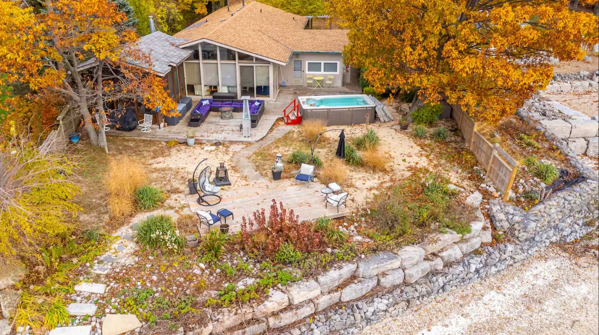 An Exquisite lakefront oasis, this home is situated on the shores of Lake Ontario. Enjoy a cedar sauna, hot tub soak while watching the sunsets, looking out over the lake and stunning evening views of the Toronto skyline. Our Cottage is pure serenity and within fifteen minutes from all that Niagara has to offer, making it one of the best vacation rentals in Niagara Cottage contract filled in and signed required. No smoking inside the home or near windows/doors license number 22106298STR