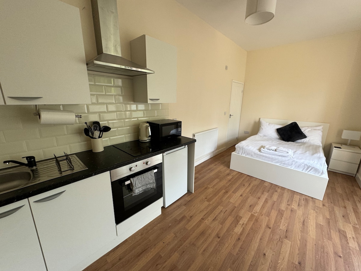 ダービーの中心部にある快適で新しいワンルームでリラックスしましょう。静かで快適、無料の専用駐車場もあります! ホテルのようなリネンを備えた快適なベッド、お茶、コーヒー、到着時の軽食、あらゆる食事に対応できるキッチンなど、必要なものはすべて揃っています 無料のアメニティグッズ(無料のトイレタリーなど)をご用意しており、短期滞在にも長期滞在にも最適です。まるで自宅にいるかのような居心地の良さです。 必要なものはすべて揃っていると思いますが、もし何か必要なことがあれば、お気軽にお知らせください。いつでも喜んでお手伝いします!
