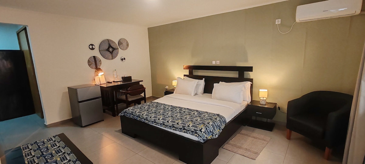 Welcome to our1 bedroom Family Suite at Farhyda & Frères Hotels. Nestled in the town of Bangangté in Cameroon, our 4-star suite is the ideal place to stay for discerning travelers. Enjoy spacious, elegant and comfortable accommodation, equipped with modern equipment and high-end services. Relax in luxurious surroundings and enjoy our exceptional hospitality. Book now for an unforgettable experience.