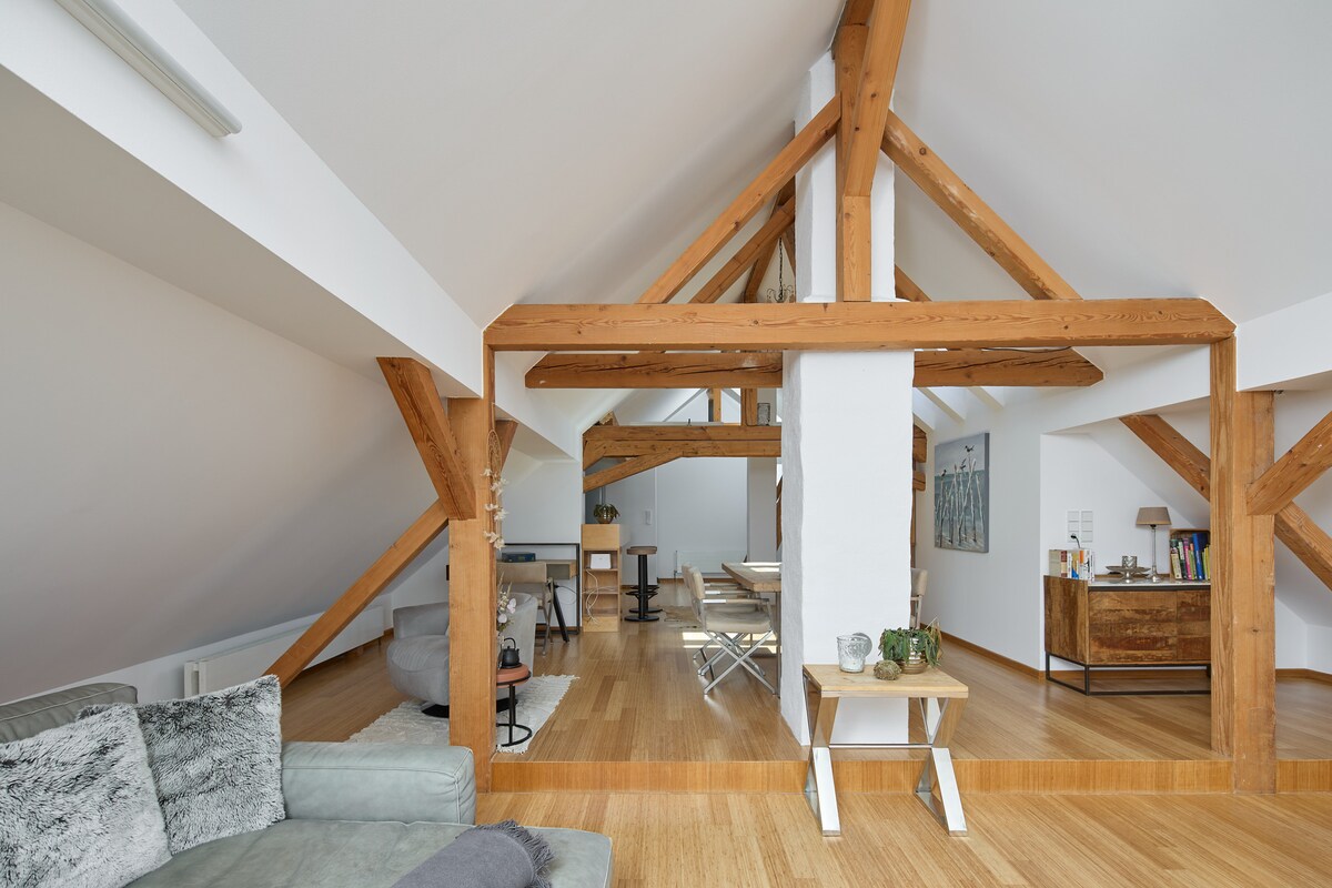 この明るい最上階のアパートには、居心地の良いリビングエリアがあり、寝室、机、そしてたっぷりの自然光があります。 ダイニングエリアを備えた設備の整ったキッチンは、スタイルと機能性を兼ね備えています。 広々としたバルコニーからは、街と山の素晴らしい景色を眺めることができます。 バスタブ付きのモダンなバスルームが快適さを保証します。 無料駐車場をご利用いただけます。 近くにはお店、レストラン、駅があり、ボーデン湖とフェスティバルホールは約1 km先にあります。