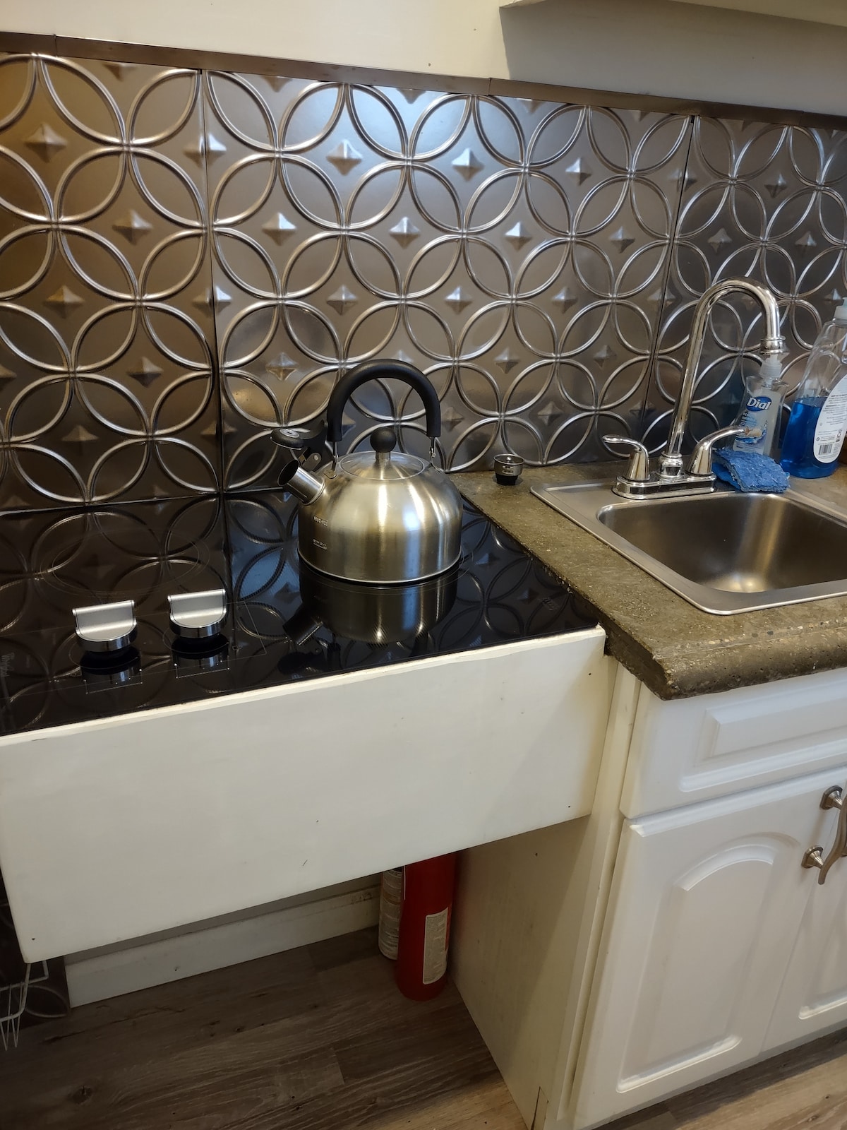 A one of a kind backyard glamping experience. Urban camping at its finest; The Ludlow Bungalow II is a creative project revamping a detached garage to a cozy wood trimmed studio apartment. Almost all of the building material is recycled from pallets, construction scrap wood and materials, and things gifted to me or old items I've replaced for customers over the years working as a contractor. This bungalow is perfect for short stays, with comfortable memory foam mattress and pillows, kitchenette