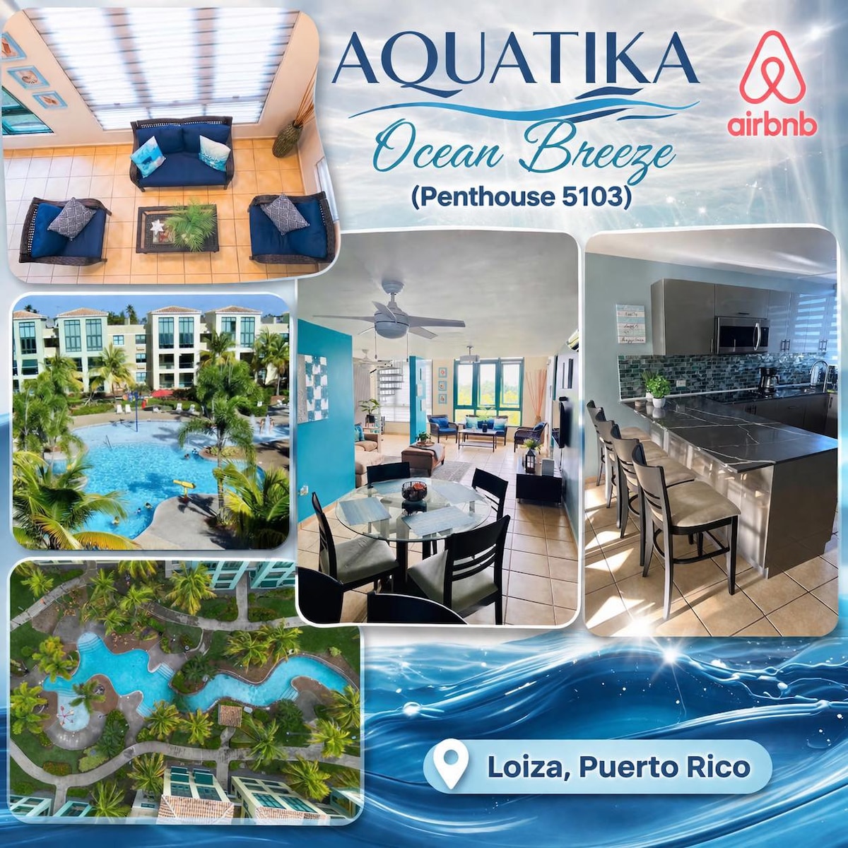 COZY, BEAUTIFUL and AMAZING 3 bedroom FIRST FLOOR apartment, located in Loiza, PR. Just a few minutes walk from a beautiful beach. The complex is designed for the enjoy of the whole family. Beach and grounds are quiet and peaceful but close to water sport activities, bars and restaurants. The complex have 5 pools, a water slide and a water park a lazy river, 2 hot tub, tennis court, basketball court, sand volleyball, mini golf and playgrounds for the little ones.