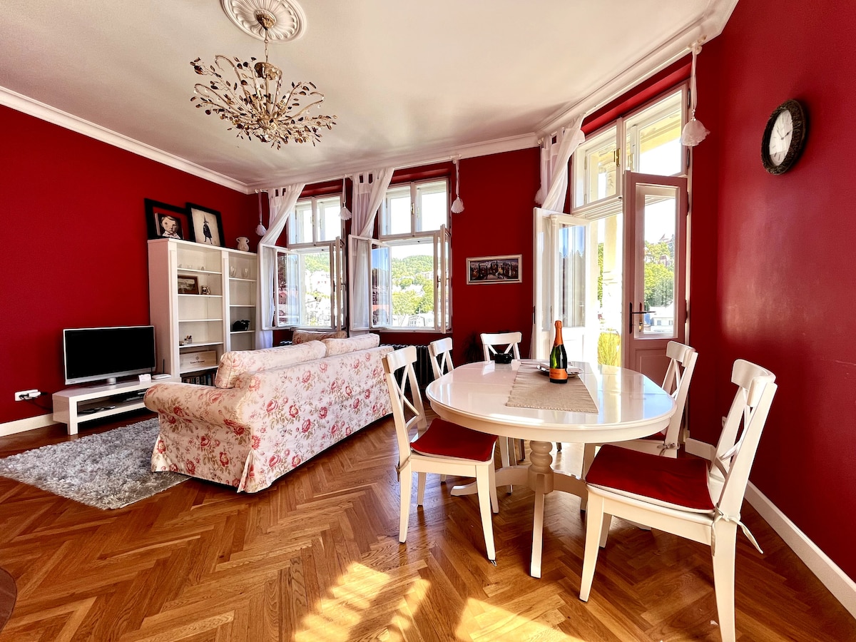 「中心部の中心」という非常にユニークなロケーションにある広々としたアパートです。スパの列柱の始まりにあり、マサリク通りの近くにあります。周辺には、手頃な価格の良いレストラン、バー、ショップなどがたくさんあります。 すべての客室からは、サドヴァ・コロナーダ(公園の列柱)とサーマルホテルの眺めが楽しめます。上階の客室にはエアコンが設置されています。キッチンには設備が整っています。アパートから約1.5 kmの駐車場に無料駐車スペースがあります。 カップルやご家族連れに最適です。