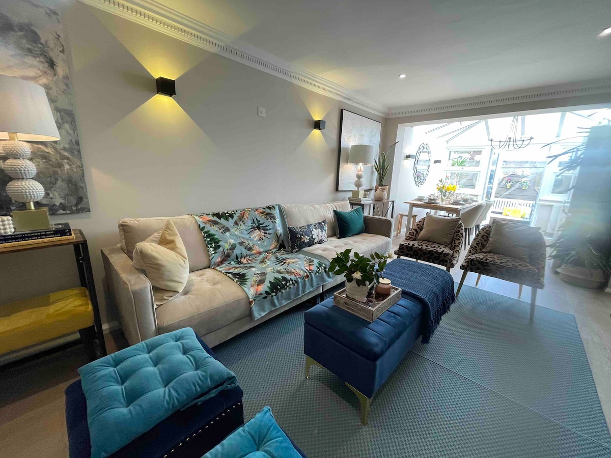 私たちの美しい家へようこそ! ご家族や大人数のグループ(10人以下)に最適です。家と庭はすべて貸切です。最近改装された4つの快適なベッドルーム(2つはスイート)、交流のための大きなキッチン、静かな住宅街にある地中海スタイルの庭園。 ウーリッチ駅まで徒歩20分です。ここからエクセル(4分)、カナリーワーフ(8分)、リバプールストリート(15分)、トッテナムコートロード(20分)、パディントン(26分)、ヒースロー(50分)に行くことができます。