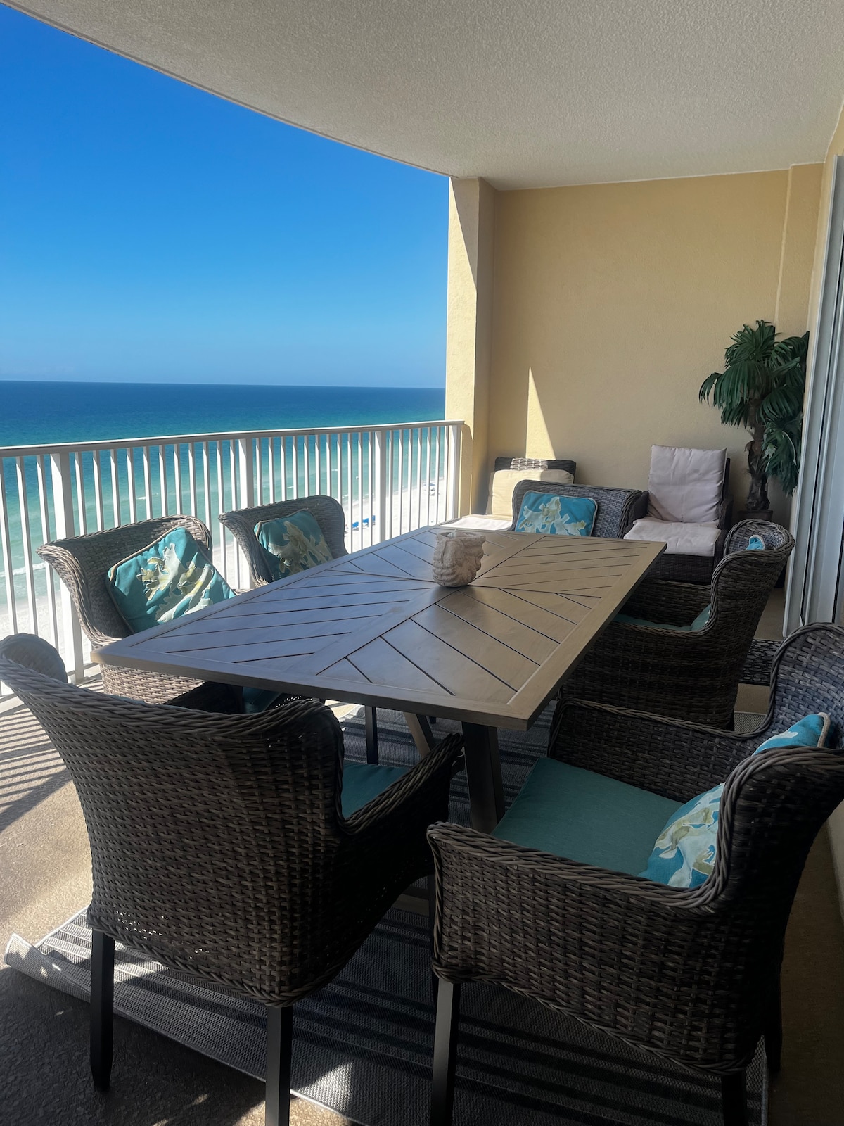 This GULF FRONT BEACH condo has a style all its own. Long Beach is a gated community and features the longest stretch of sand in PCB. This newly renovated condominium on the 7th floor has panoramic views of the Gulf from every room . Spanish-style ceramic tile floors & premium granite countertops throughout. The huge curved balcony attracts spectacular sunsets. The resort has low occupancy so the super-fast elevators won't leave you waiting. The resort has a 25 yo age minimum in order to book.